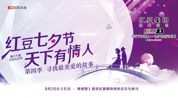 紅豆男裝積極響應集團號召,將愛進行到底。第十六屆紅豆七夕節紅豆男裝以“紅豆七夕節,天下有情人”為主題,開展一系列大小活動,紅豆男裝始終秉承以“情”打造新型體驗式消費的理念,在中國情人節七夕節期間,形成了以點帶線、以線串面式的七夕傳統文化推廣模式。