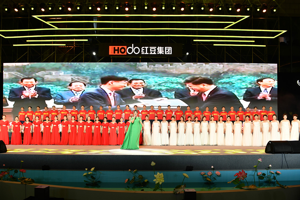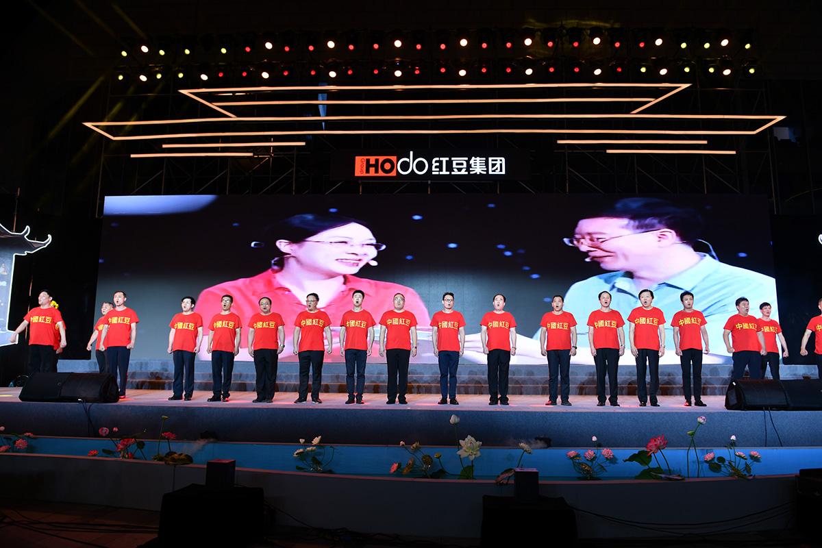 隨著音樂緩緩響起,扮演成“牛郎”和“織女”的男女舞蹈演員,在臺上翩然起舞,演繹著神話傳說中的“愛情故事”,晚會就在這支歌舞《七夕,我們的節日》中拉開了序幕。據悉,為打響企業文化優質品牌,弘揚積極向上的紅豆勵志精神和拼搏精神,紅豆集團特別邀請了全國及全省內外有非凡影響力和創作能力的詞作家、曲作家、音樂家來紅豆采風,精心創作了一組《紅豆組歌》。晚會上,觀眾們首次欣賞到了《紅豆組歌》的所有原創歌曲。