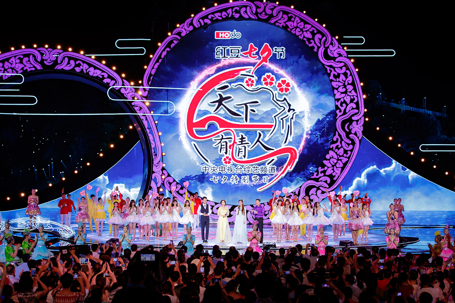 “又是七月七,浪漫的七夕。在愛中傳承,中華記憶。又是七月七…….”8月28日七夕當晚19:30,由紅豆集團獨家冠名的中央電視臺綜藝頻道2017年七夕特別節目《紅豆七夕節 天下有情人》正式播出。女子組合SNH48帶來的《又是一年七月七》開啟了整場晚會的序幕。自2001年開始打造七夕活動起,今年已是紅豆集團連續第十七年舉辦紅豆七夕節,弘揚七夕文化。此次晚會也圍繞七夕文化的含義,將舞臺搭建在傳說中的“毛衣女”下凡之地——新余仙女湖畔,山水相依、星月為伴,為觀眾呈現出了一幅美輪美奐的七夕夜宴圖。