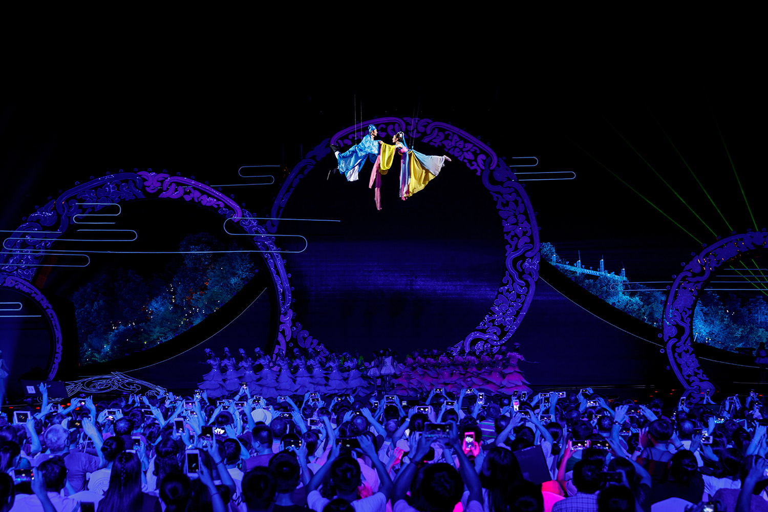 為了將傳統的戲曲用新的方式演繹出來,節目組還特別邀請了張碧晨、李多娜、好妹妹樂隊、張赫宣和專業戲曲演員進行合作,共同演繹《牛郎織女》《化蝶》《游園驚夢》《天仙配》等古典愛情故事傳說,對傳統的戲曲京劇、黃梅戲、昆曲進行了跨界改編,別樣的演繹出新時期的傳統文化魅力。據悉,舞臺的背景四個大小不同的圓,圓周為中國古典花紋鏤空造型,寓意“花好月圓”,這也是傳統文化的一種展現。