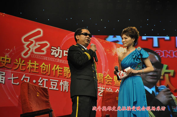 “江中有你的小溪,江中有我的河,江中有你人生的一段跋涉,在那激情演繹的歲月,你像陽光走進天地,走進我生活……”歌曲《江戀》的旋律剛一響起,整個劇場內爆發出雷鳴般的掌聲。“這首歌是史光柱為歌頌愛情,為我們紅豆集團寫的歌。”李先生一邊鼓掌,一邊說道。如果沒有1984年的那場戰爭,這個世界將會少一位英雄;如果沒有那場戰爭,這個世界就會多一雙明亮的眼睛。史光柱,這個響亮的名字,在上個世紀八十年代感動和影響了整整一代人。戰傷后,他從雙目失明的陰影中走出,拿起筆桿,在文藝的陣地繼續攻關拔礙、沖鋒陷陣,譜寫了一首首紅色經典和一個個史光柱傳奇。據悉,當天整場晚會共16首歌曲全部是由史光柱創作而成,其中《江戀》、《紅豆》和《青春木棉》三首歌曲是他專門為紅豆集團創作的。“史政委,這么多年來,究竟是什么力量讓您始終飽含創作的激情?”晚會上,主持人的問題代表了所有人心中的疑問。“祖國、大愛、崇高的理想一直都在我心中,是它們激勵著我克服了重重困難,我想說的是,崇高讓我高尚,崇高讓我內心充滿陽光。”史光柱的回答引得現場觀眾連連贊嘆,將晚會推向了一個小高潮。男生獨唱、女生獨唱、男女對唱、歌伴舞,一首首紅色經典不僅激發起觀眾們對于愛情的美好聯想,而且引起了他們對故鄉、祖國的思念。
