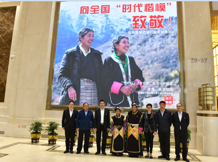 此次結(jié)對(duì)互助活動(dòng)是江蘇和西藏自治區(qū)共同深化典型學(xué)習(xí)宣傳工作的探索實(shí)踐,有助于匯聚榜樣力量、放大典型效應(yīng),推動(dòng)愛(ài)國(guó)主義教育和公民道德建設(shè)。活動(dòng)上,兩位“時(shí)代楷模”周海江和卓嘎分別代表紅豆集團(tuán)和西藏自治區(qū)山南市隆子縣玉麥村簽訂了結(jié)對(duì)共建協(xié)議,仁青洛布和袁飛共同為時(shí)代楷模互助聯(lián)系點(diǎn)揭牌。卓嘎、央宗姐妹向參會(huì)嘉賓們敬獻(xiàn)哈達(dá),周海江還向卓嘎、央宗姐妹贈(zèng)送了紅豆吉祥物。
