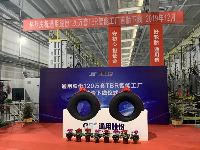 12月27日上午,通用股份120萬套TBR智能工廠首條全鋼子午線輪胎正式下線。下線首胎為通運 12.00R20—XR856。通用股份董事長顧萃,常務副總經理程金元、生產板塊總經理虞秀鳳等領導出席了本次儀式。