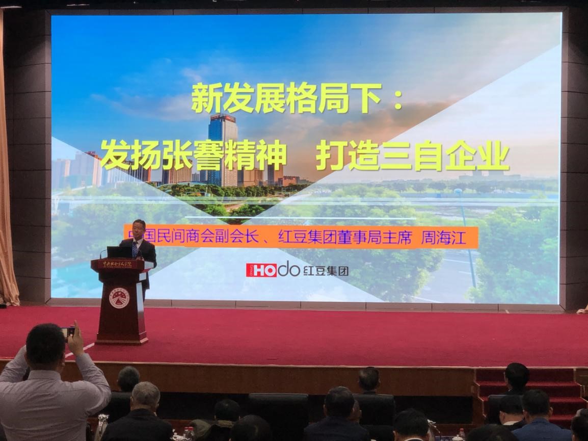 12月12日,張謇精神的時代意義2020年度論壇在中央社會主義學院開幕,兩百多專家、學者和企業家參加了論壇。全國人大常委會副委員長、民建中央主席、中央社會主義學院院長、中華職業教育社理事長郝明金,中央統戰部副部長、國務院僑務辦公室主任、中央社會主義學院第一副院長潘岳,中華全國工商業聯合會黨組成員、副主席李兆前,江蘇省委常委、統戰部部長楊岳等領導出席論壇,論壇以“新發展格局與張謇精神”為主題,大家將圍繞“雙循環”新發展格局下的民營經濟發展、實體經濟的高質量發展與職業教育、愛國企業家典范的內涵闡釋三個議題板塊作主旨演講和探討。紅豆集團董事局主席周海江應邀參加論壇,并作了“新發展格局下 發揚張謇精神打造三自企業”主題演講。