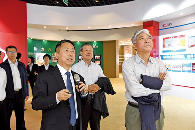在紅豆黨建館,紅豆集團黨委書記、董事局主席兼CEO周海江介紹了紅豆創(chuàng)立的現(xiàn)代企業(yè)制度+企業(yè)黨建+社會責(zé)任“三位一體”的中國特色現(xiàn)代企業(yè)制度、主題教育開展、企業(yè)發(fā)展等情況。周海江說,企業(yè)健康發(fā)展、企業(yè)人士健康成長,這是黨和國家對民營企業(yè)的基本要求,也是廣大民營企業(yè)的內(nèi)在要求。紅豆集團始終堅持黨建引領(lǐng)企業(yè)治理,將黨的政治優(yōu)勢轉(zhuǎn)化為企業(yè)發(fā)展優(yōu)勢,始終堅持“聽黨話、跟黨走,講正氣、走正道”,始終堅持“以人民為中心”的發(fā)展理念,不忘初心、牢記使命,致富鄉(xiāng)親、造福社會,實業(yè)報國、八方共贏。